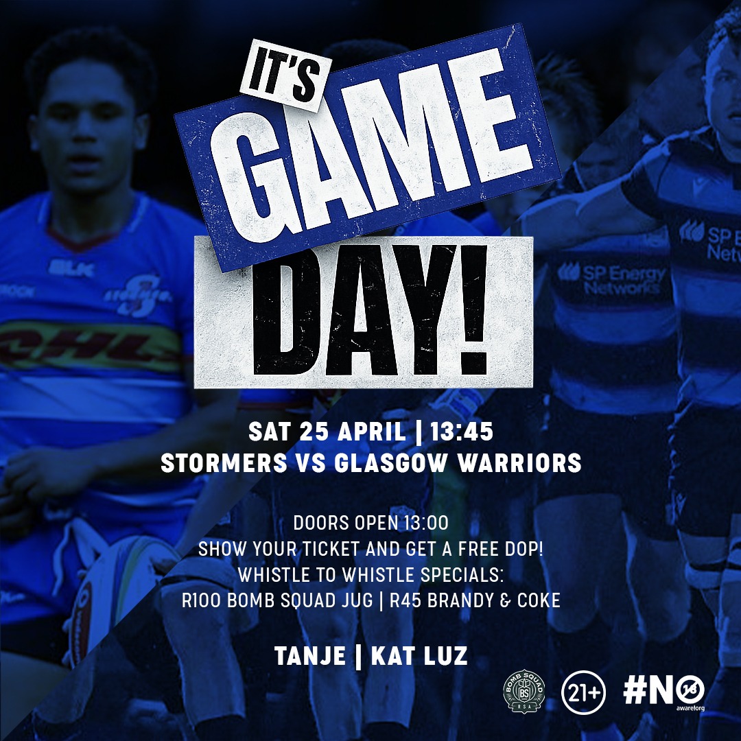 Show your Stormers ticket, get a FREE DRINK! 🍸 Happy Hour 6-8pm 🥩 Order A Grill & Get Free Dessert & Dop 🤑 R80 from 10pm 🔞 21+ Venue: The Village Idiot Address: 32 Loop St, CBD, 8001 Age Policy: 21+ Doors Open: 18:00 Presented by: The Village Idiot